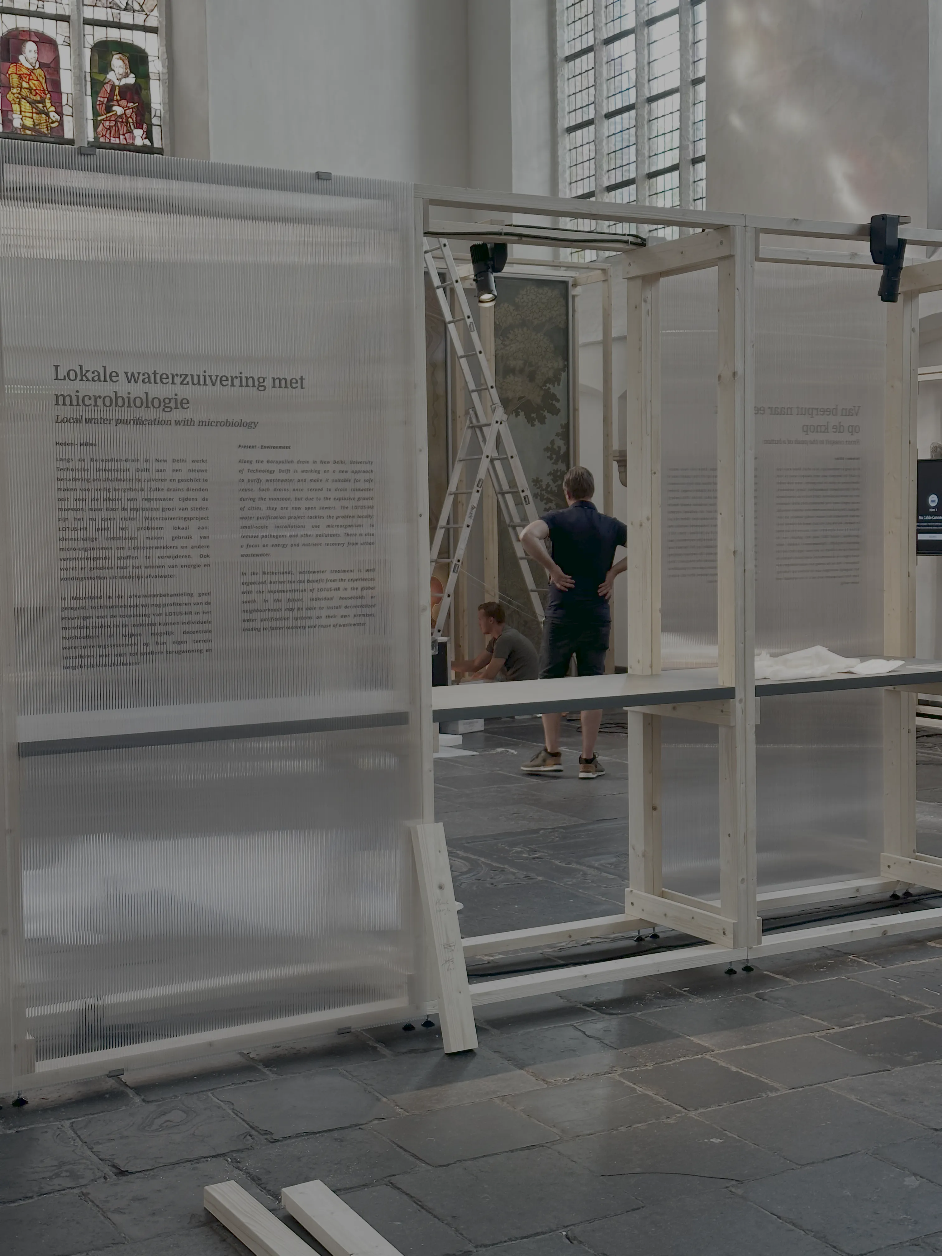 The design is flexible and completely demountable. The framework is getting re-used in various exhibitions and events hold by the TU Delft Science Center.