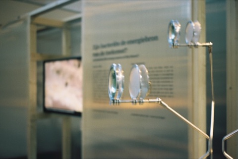 An exhibition about the legacy of Antoni van Leeuwenhoek and the world of microbiology. The visitor gets guided in a reverse chronology. From projects with futuristic technology, to current research, historical moment and ending at the grave of van Leeuwenhoek.