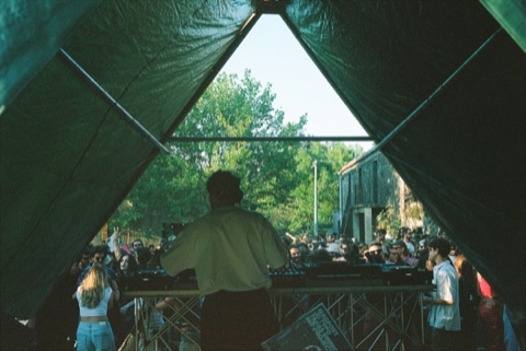 Ballroom, the main stage in a foresty area, lets surrounding trees enclose the dance floor. The stage, designed by Irene Ginesi and Caterina Signorelli, opens to vineyards on the slopes behind, with white fluid fabrics allowing shadows to come alive. At night the light design embraces the steel structures verticality. Slow movements and gradients tuning participants to the music, with the tall trees forming the nocturnal backdrop.
