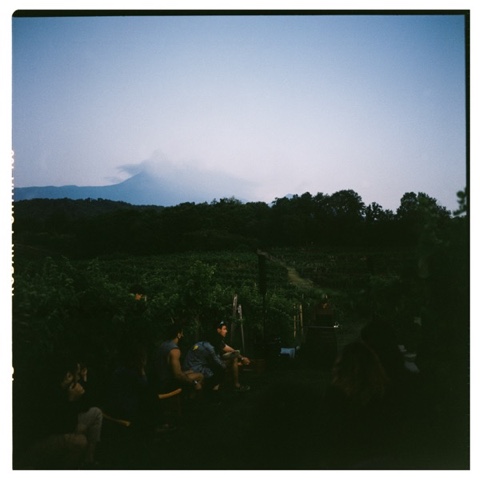 Punto Base reuses the triangular structure from the Hedera edition. An altered roof opens toward the view, allowing air and light to move the fabric. In the night the stage is dynamic and dramatic. The booth, crafted from earth and fabric, mirrors Etna’s forms, with light beaming through the soil. The color tones of the scenography draw from the black volcanic soil, the heavy stones and bright magma contrasts. In the background the eruptions of Etna are visible, she’s excited to join the festival again.